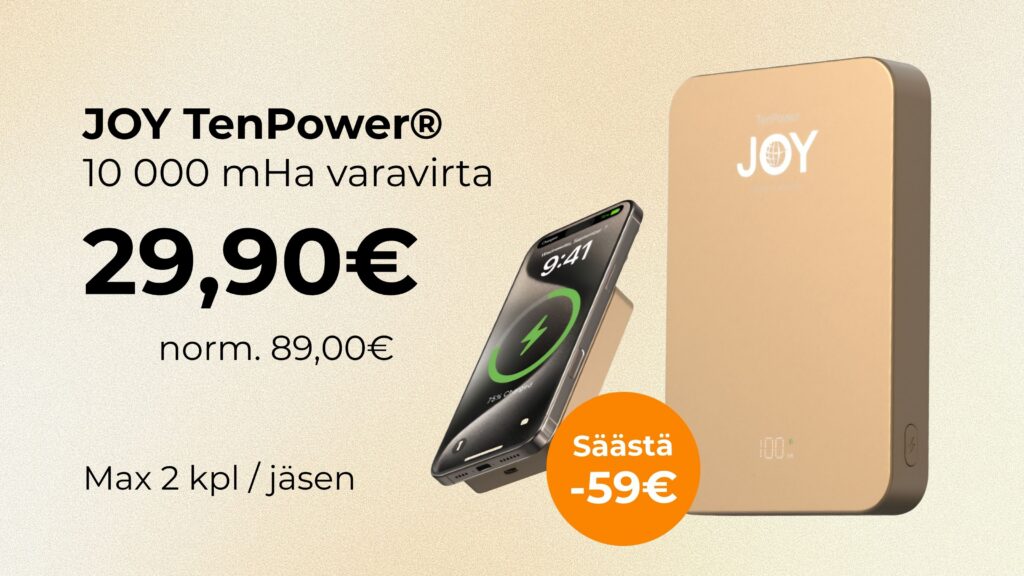 Älä jää ilman virtaa! Tehokas 10 000mHa varavirta kulkee mukanasi minne menetkin. Nopea langaton ja langallinen lataus. Lataa kahta puhelinta samanaikaisesti. Etu max. 2 kpl per jäsen. Toimituskulu yhdelle tuotteelle 5,90 €, ilmainen toimitus kahdelle tuotteelle. Voimassa SPJL CityShopparilla 31.1.2026 asti.